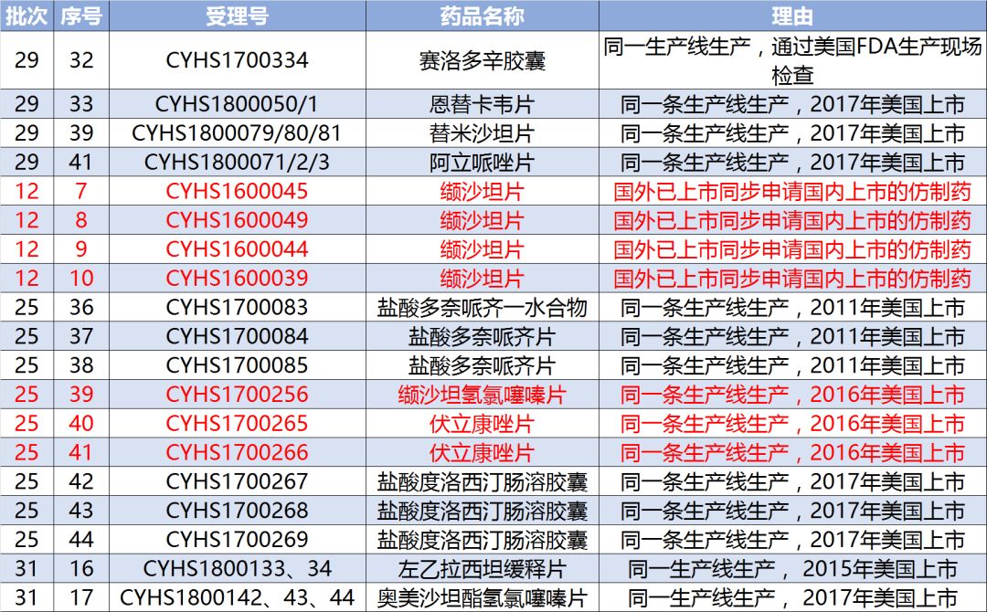 同时,在拟纳入优先审批名单(部分)中,华海就有19个产品是以国内外共线生产的理由纳入,而根据有关规定,对于欧美日已上市的,同时国内外共线生产的,采用同处方工艺的,若该品种优先审评通过后,将视同通过一致性评价。