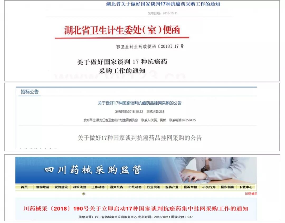 目前,四川、湖北、黑龙江省等地都已发出17种国家谈判抗癌药品挂网采购的公告。福建省宣布将这17种药品纳入该省医保药品目录乙类范围,按照国家规定的限定支付范围执行。