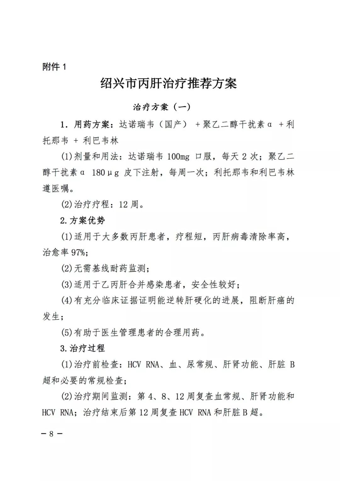 1. 绍兴市丙肝治疗推荐方案