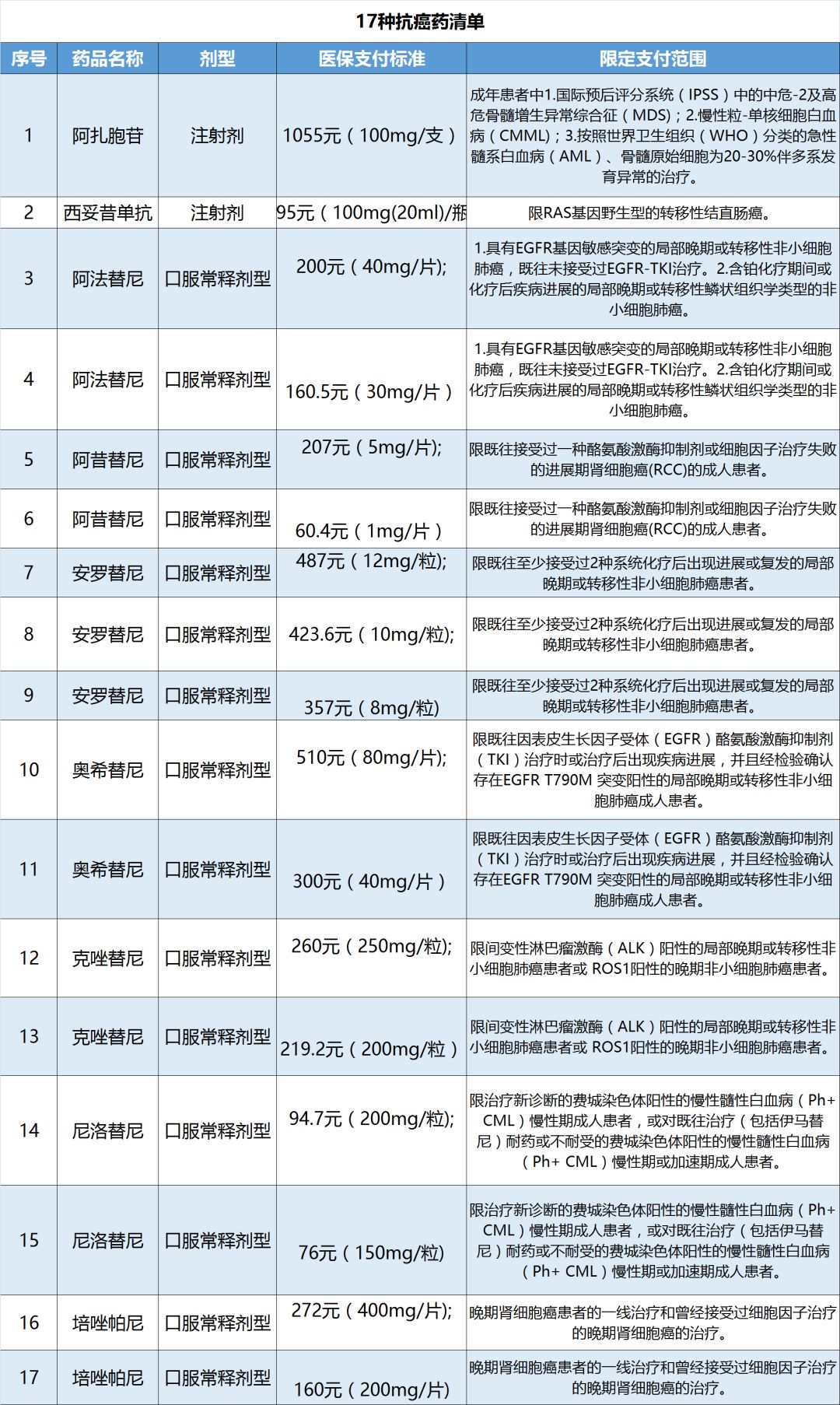 10月17日,福建省医保办发布通知,指出将17种国家谈判抗癌药纳入门诊特殊用药管理的药品名单(第三批)。