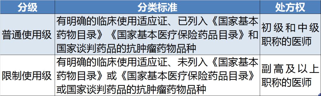 特殊情况下抗肿瘤药物的使用仅限于三级医院授权的具有高级专业技术职称的医师,采纳根据依次是:其他国家或地区药品说明书中已注明的用法,国际权威学协会或组织发布的诊疗规范、指南,国家级学协会发布的经国家卫生健康委员会认可的诊疗规范、指南。