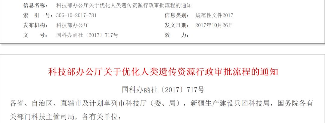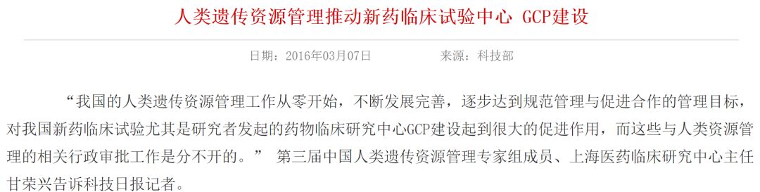 而2017年10月26日,国家科技部又发布通知,科技部研究制定了针对为获得相关药品和医疗器械在我国上市许可,利用我国人类遗传资源开展国际合作临床试验的优化审批流程。