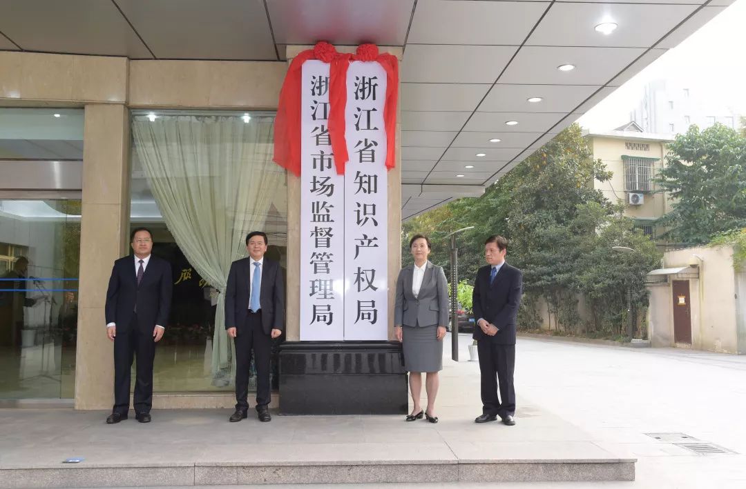 浙江省市场监督管理局(知识产权局)揭牌成立,标志着浙江市场监管事业迈入了一个崭新的时代。根据《浙江省机构改革方案》,将省工商行政管理局、省质量技术监督局、省食品药品监督管理局的职责,以及省物价局的价格监督检查与反垄断相关职责,省科学技术厅(省知识产权局)的知识产权保护协调和专利行政执法指导职责,省商务厅的打击侵犯知识产权和假冒伪劣商品以及反垄断等相关职责整合,组建省市场监督管理局,作为省政府直属机构,加挂省知识产权局牌子。组建省药品监督管理局,作为省市场监督管理局管理的副厅级机构。保留省食品安全委员会,具体工作由省市场监督管理局承担。不再保留省工商行政管理局、省质量技术监督局、省食品药品监督管理局。