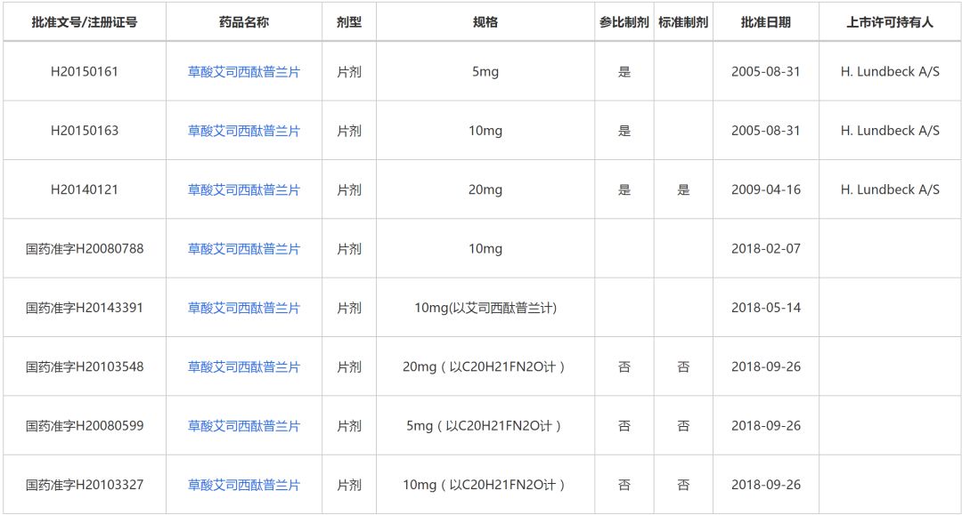 山东京卫草酸艾司西酞普兰片三规格通过一致性评价