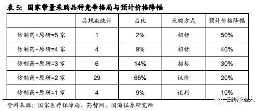 明显,我们可以看到大部分带量采购的品种价格降幅明显。在带量采购的模式下, 药企之间的竞争变成了一种“全或无”的游戏。