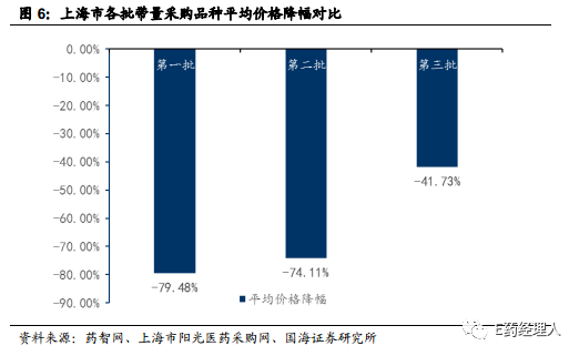 如果能够中标,便可快速获得大部分的市场份额,如果未能中标,则至少在这 1 年之内将失去这部分市场。 药企只能通过降价来争取中标的而机会。可以看到上海三批带