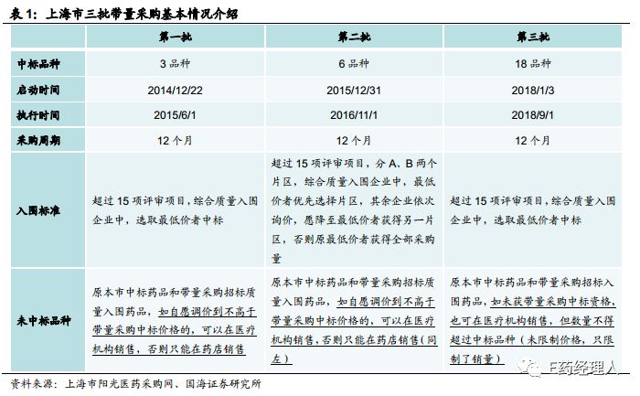 自 2014 年底以来,上海市一共进行了三批带量招标采购,整体方案循序渐进、覆盖品种逐步增多。