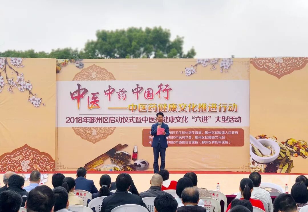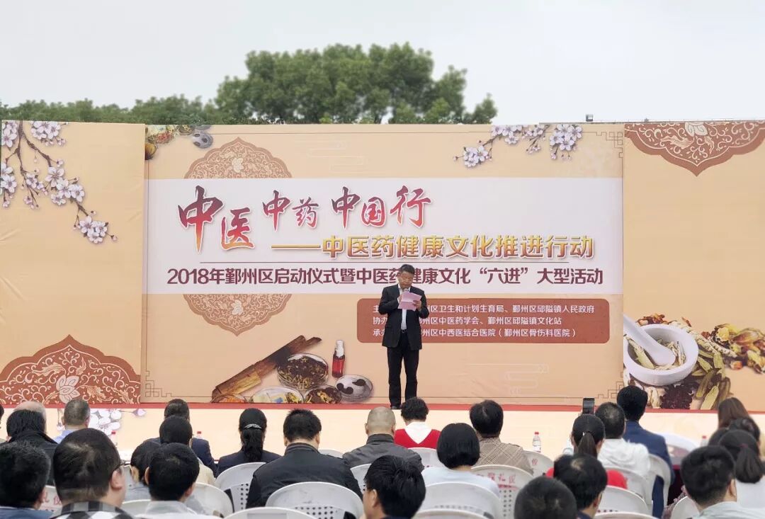 “中医中药中国行—中医药健康文化推进行动”2018年鄞州区启动仪式暨中医药健康文化“六进”大型活动在鄞州区邱隘镇文化广场举行。本次活动由鄞州区卫生和计划生育局和邱隘镇人民政府主办,鄞州区中医药学会、邱隘镇文化站协办,鄞州区中西医结合医院承办。