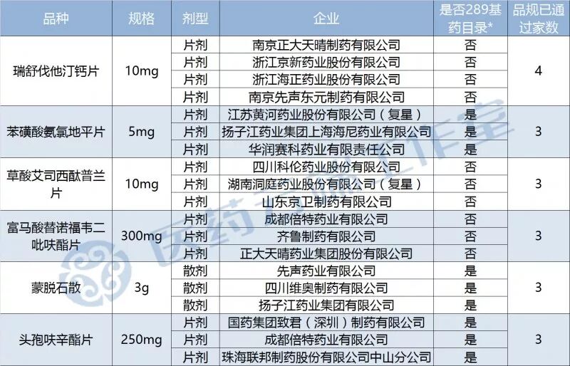 据医药云端工作室统计,目前已有6个品规集满3家企业通过一致性评价,其中瑞舒伐他汀钙片已有4家,2018年底大限即将到来,尽管有些品种并不是289基药目录内的,但是抢占市场优势也是相当重要的,各企业都在和时间赛跑。