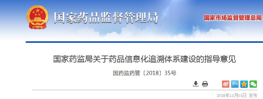 今天(11月1日),国家药监局印发《关于药品信息化追溯体系建设的指导意见》明确,以实现“一物一码,物码同追”为方向,加快推进药品信息化追溯体系建设,强化追溯信息互通共享,实现全品种、全过程追溯,促进药品质量安全综合治理,提升药品质量安全保障水平。