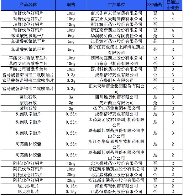 截至目前,通过仿制药一致性评价或视同通过仿制药一致性评价的105个品种中通过企业达 3 家及以上品种的已有6 个。