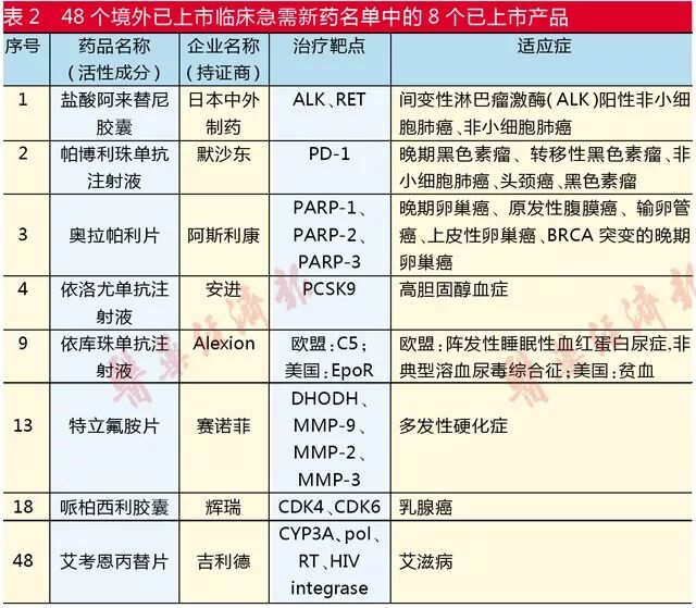预计进口药下一批大量获批的药品为临床急需境外新药。