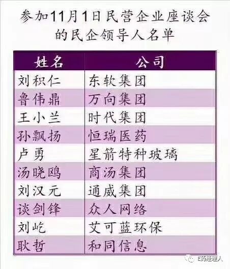 11月1日,十 八大以来首次以最高规格的一次民营企业座谈会,最高领导人主持召开。