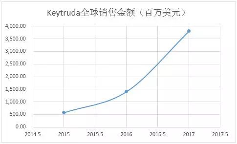 根据中国医药工业信息中心PDB全球畅销药500强的统计数据,2017年Keytruda的全球销售金额为38.09亿美元,比去年增长171.7%。而默克近日也宣布,2018年第三季度医药板块的销售额为97亿美元。这份业绩的获得主要是由肿瘤业务方面以及Keytruda销量的强劲增长推动的,并且与该产品新适应症的批准以及其作为唯一一线PD-1单抗治疗非小细胞肺癌的地位密切相关。当季,Keytruda销售额达到19亿美元,较2017年第三季度增长80%,较2018年第二季度增长14%。