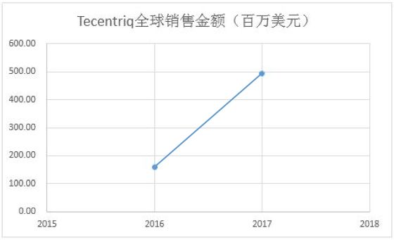 Tecentriq在2017年表现出了强劲的增长力。中国医药工业信息中心PDB全球畅销药500强的数据显示,2017年Tecentriq的销售额达到5.95亿美元,增长率为212.2%,大有后来者奋力直追之势。
