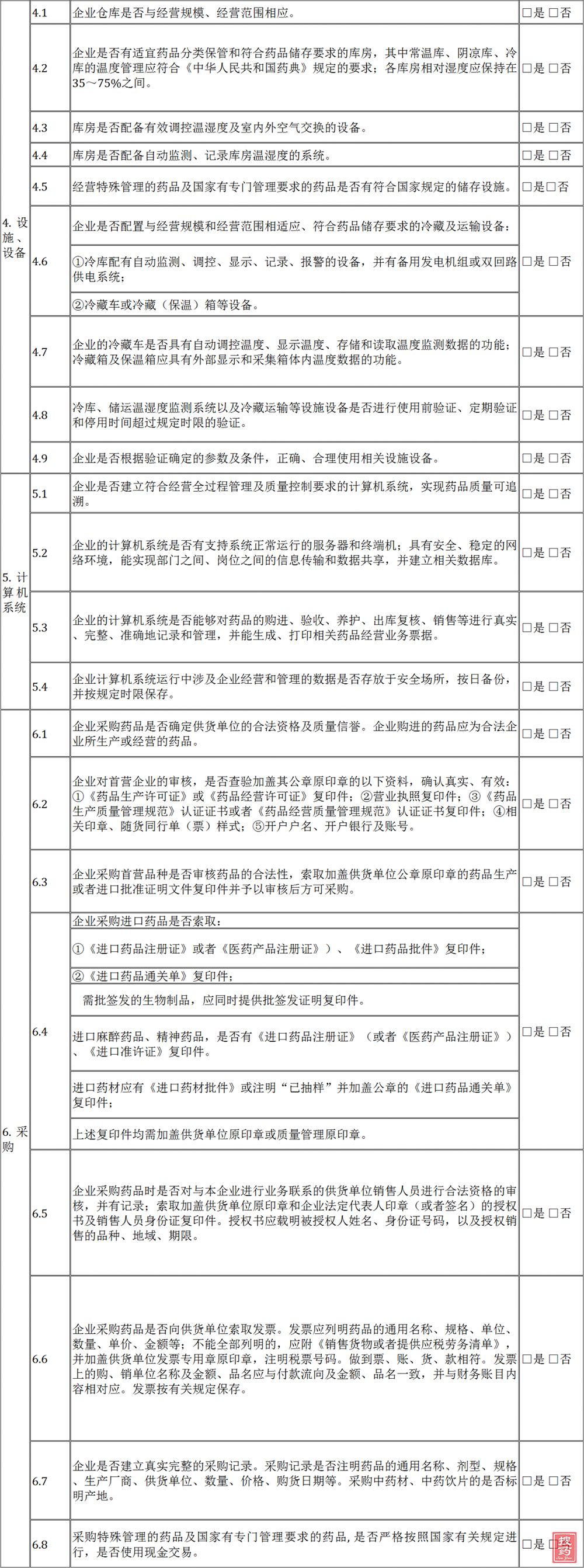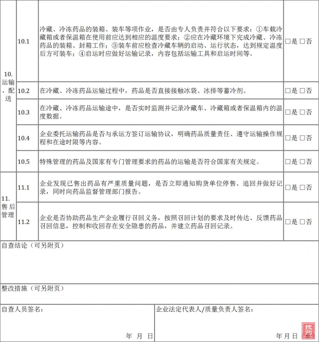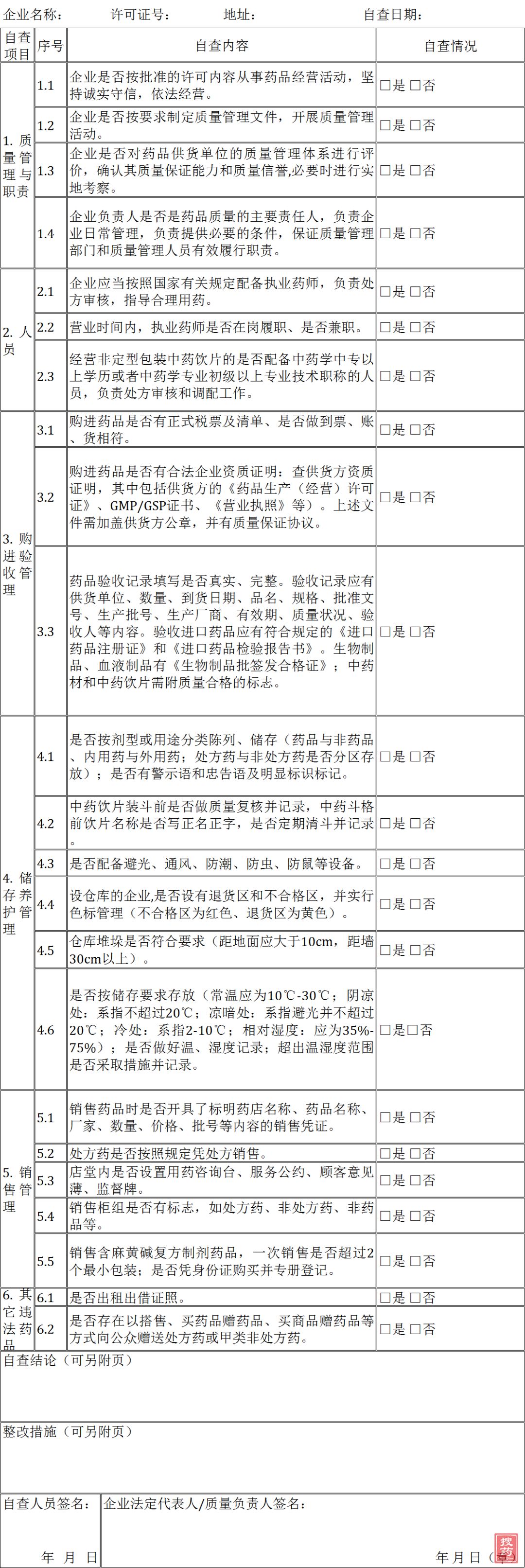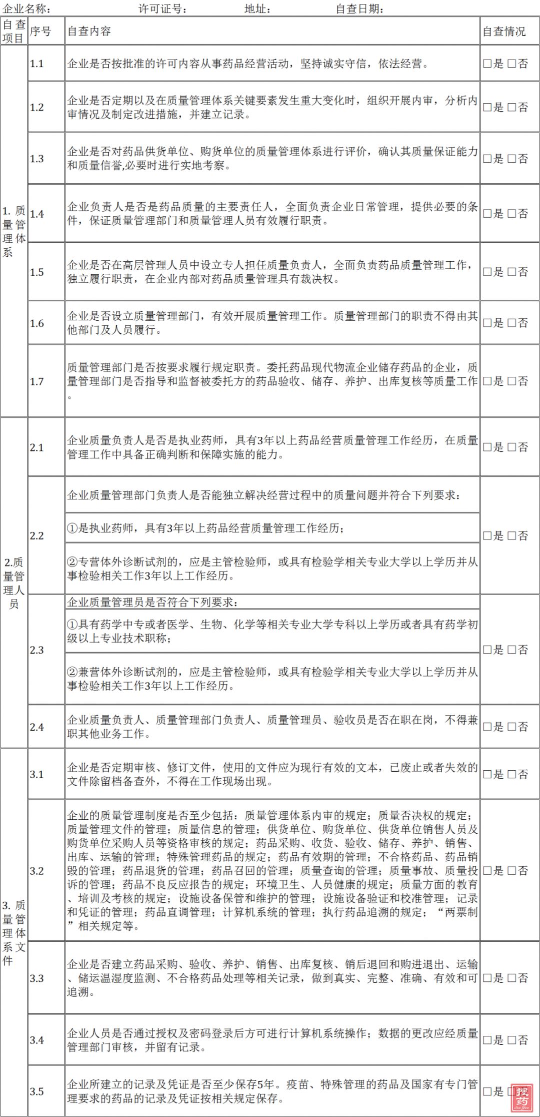 药品批发企业(零售连锁总部)落实主体责任情况自查表(点击看大图)