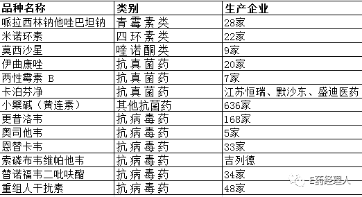另外在本次出局的22个品种里面,有多个已经在临床上药物标准被取代的品种,例如自国家2012 年出台《抗菌药物临床应用管理办法》以来,众多的头孢类抗生素以及喹诺酮类、氨基糖苷类抗生素被列入“限制用药”和“特殊用药”范围,市场拓展受到较大的局限,销量大幅度缩水,抗生素市场重新洗牌。所以本次基药目录调整中多种抗生素也不意外。例如丝裂酶素、制霉素和抗真菌药等品种。