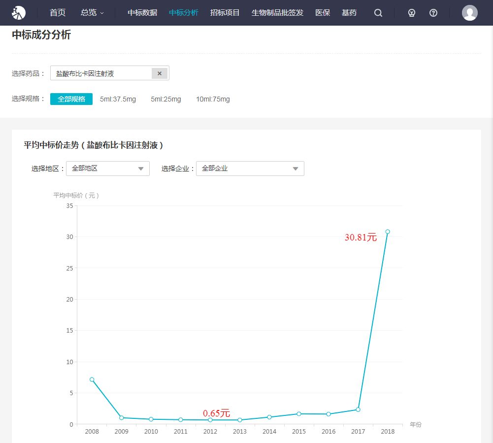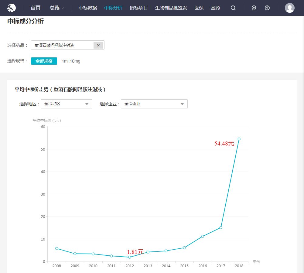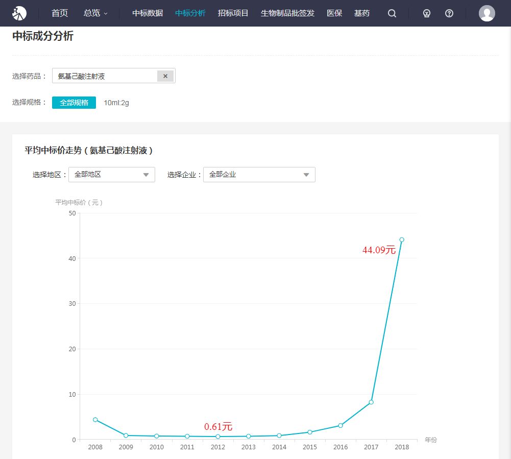 这是一个专业的医药行业数据库,其中收录了全国所有药企所有地区每年的招标情况。这样能够反映全国这一药物的最新投标价格。由于目前采取药品零加成政策,这一价格和医院内的价格应该是接近的。