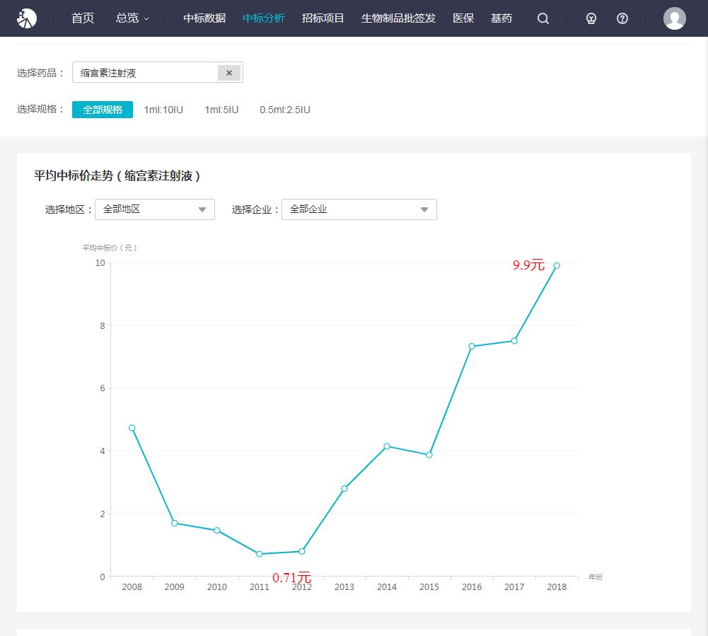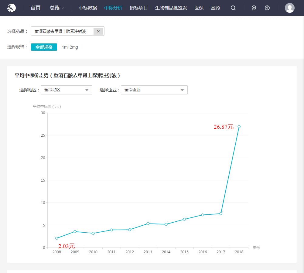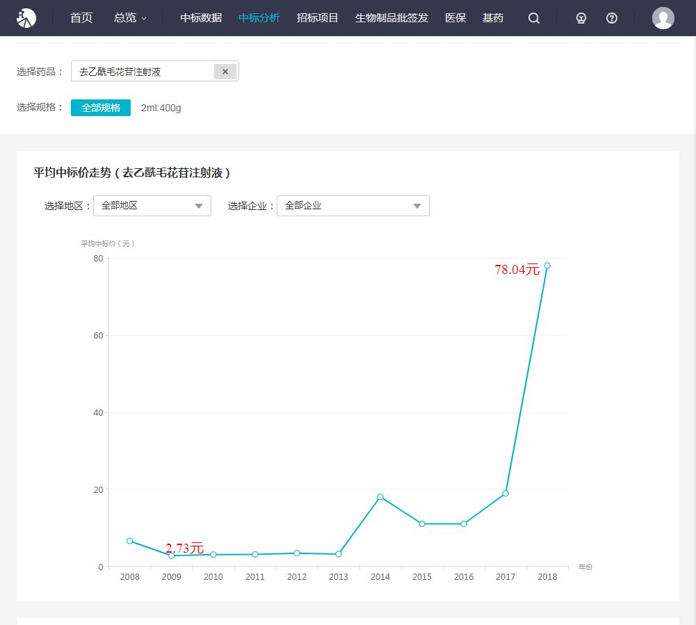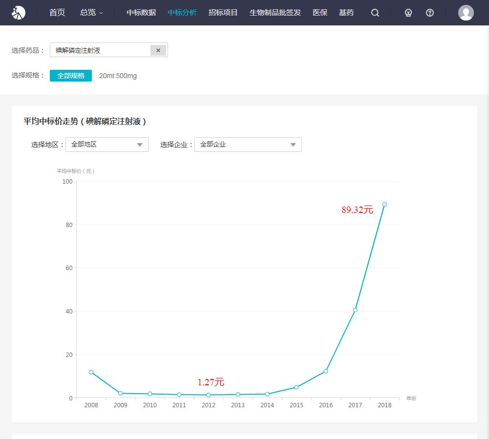 这是一个专业的医药行业数据库,其中收录了全国所有药企所有地区每年的招标情况。这样能够反映全国这一药物的最新投标价格。由于目前采取药品零加成政策,这一价格和医院内的价格应该是接近的。