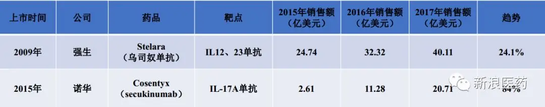 银屑病市场,强生的乌司奴单抗凭借先行的优势,目前在白介素抑制剂市场遥遥领先,预计2019年全球市场销售为58.74亿美元。