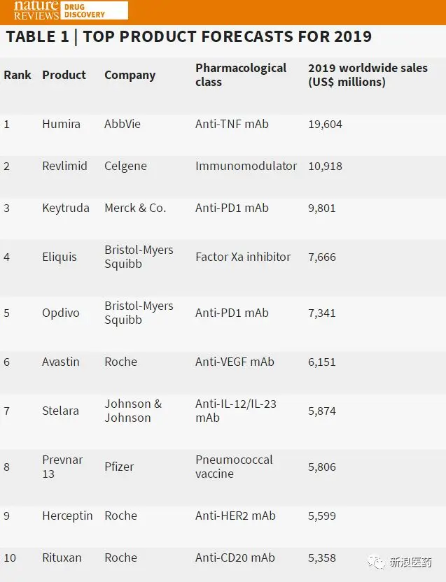 近期,Nature review drug discovery在公布2018年FDA批准药物之余,还给出了2019年TOP10药物名单。趁2018年各巨头公司尚未给出年报的时候,我们先领略下明年极大可能占据TOP10的药物,窥探下药物市场下的暗潮涌动。