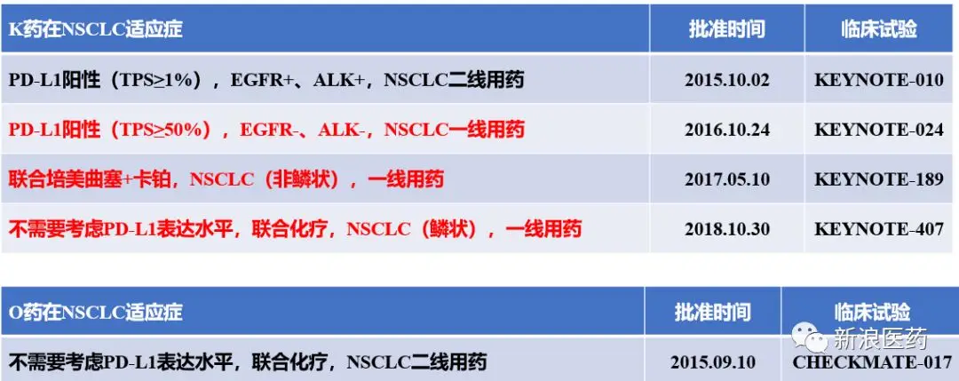 2018年10月,一线鳞状NSCLC加上之前联合化疗的非鳞状NSCLC,基本上K药涵盖了约80%的NSCLC患者,远远甩开了O药和罗氏的T药。同时在不考虑PD-L1表达的情况下,K药联合化疗都取得了临床突破。而O、T还处于依靠生物标记物的推进阶段。